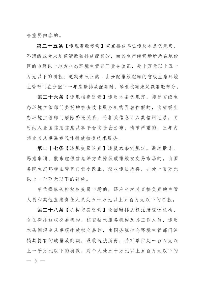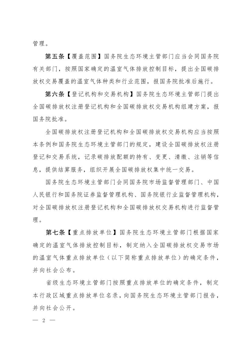 中華人民共和國生態(tài)環(huán)境部今日正式發(fā)布關于公開征求《碳排放權交易管理暫行條例(草案修改稿)》意見的通知,《草案修改稿》稱,該暫行條例施行后,不再建設地方碳排放權交易市場。暫行條例施行前已經存在的地方碳排放權交易市場,應當逐步納入全國碳排放權交易市場。具體步驟和辦法由國務院生態(tài)環(huán)境主管部門制定。原文如下: